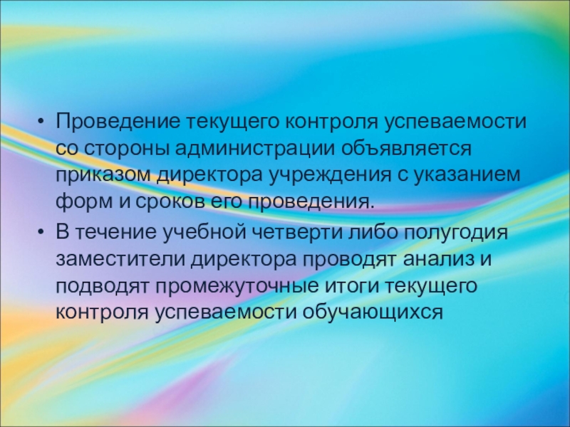 Проведение текущего контроля успеваемости со стороны администрации объявляется приказом директора учреждения