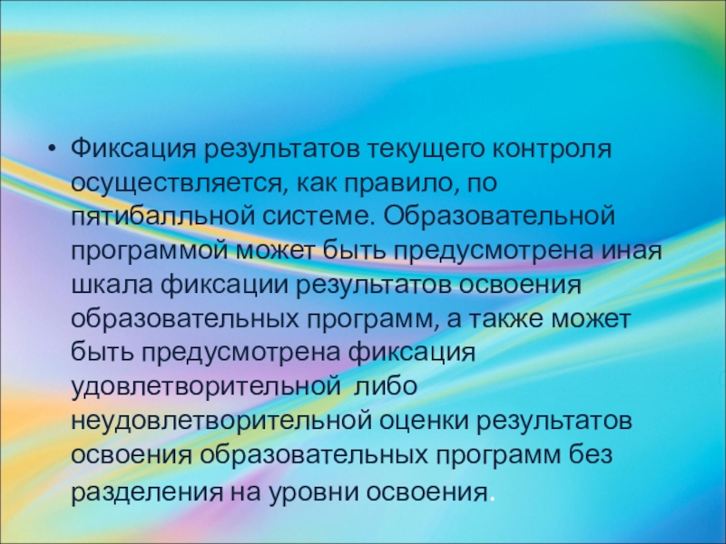 Фиксация результатов текущего контроля осуществляется, как правило, по пятибалльной системе. Образовательной