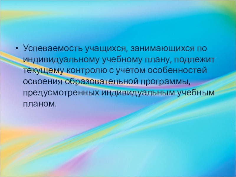 Успеваемость учащихся, занимающихся по индивидуальному учебному плану, подлежит текущему контролю с