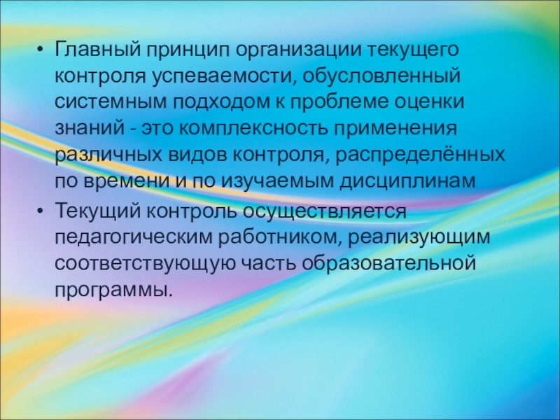 Главный принцип организации текущего контроля успеваемости, обусловленный системным подходом к проблеме