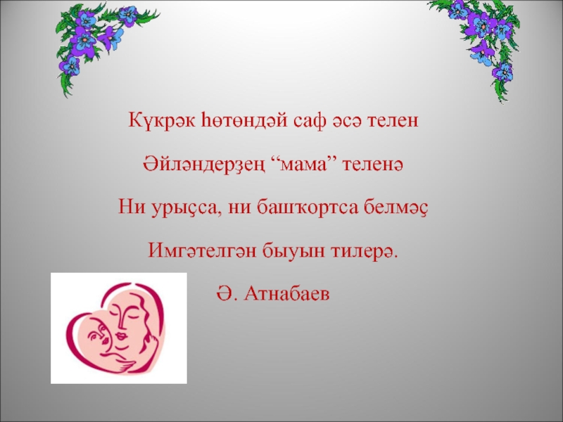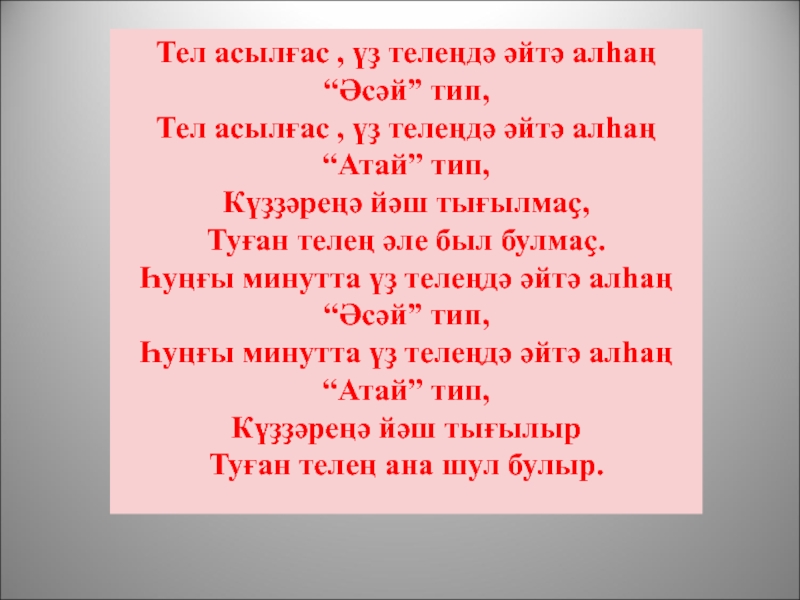 Слайд 17Тел асылғас , үҙ телеңдә әйтә алһаң “Әсәй” тип,