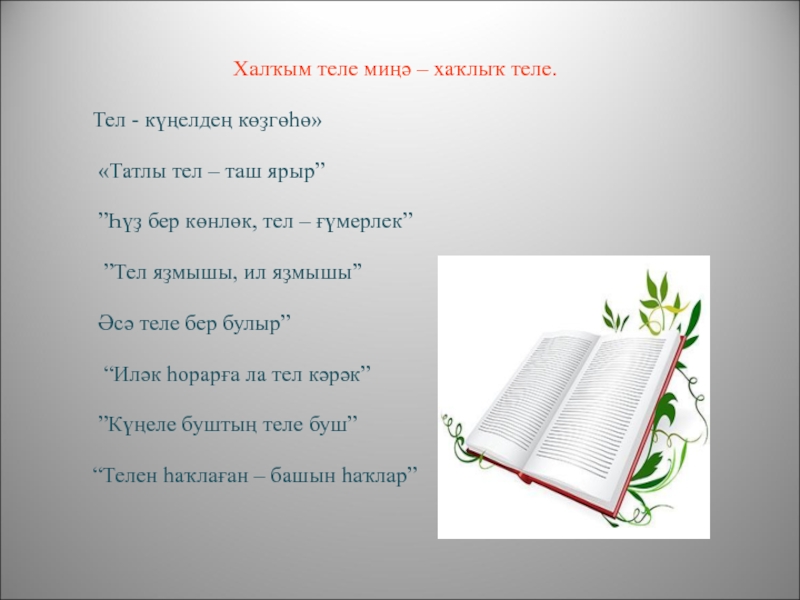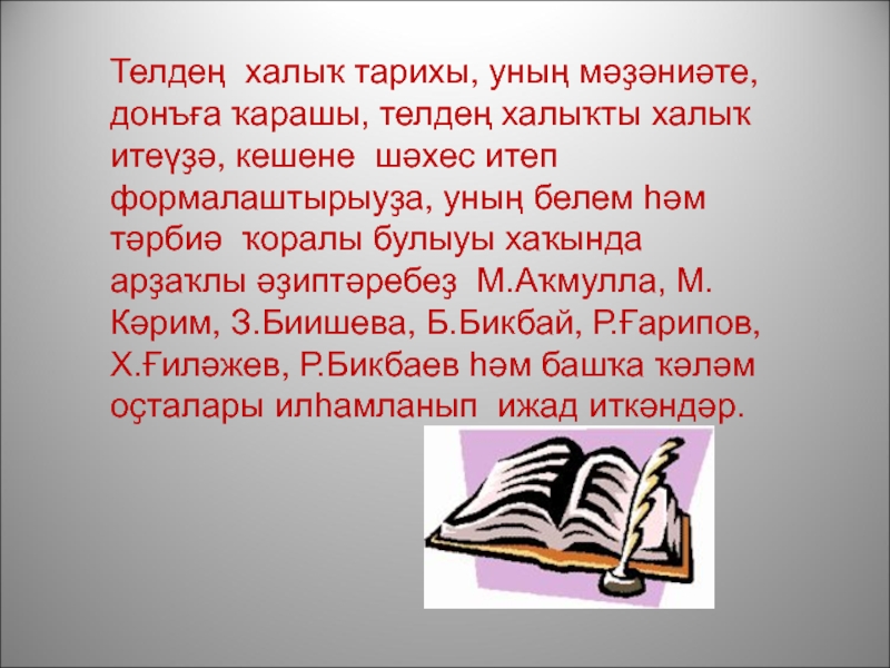 Слайд 14Телдең халыҡ тарихы, уның мәҙәниәте, донъға ҡарашы, телдең халыҡты халыҡ итеүҙә,