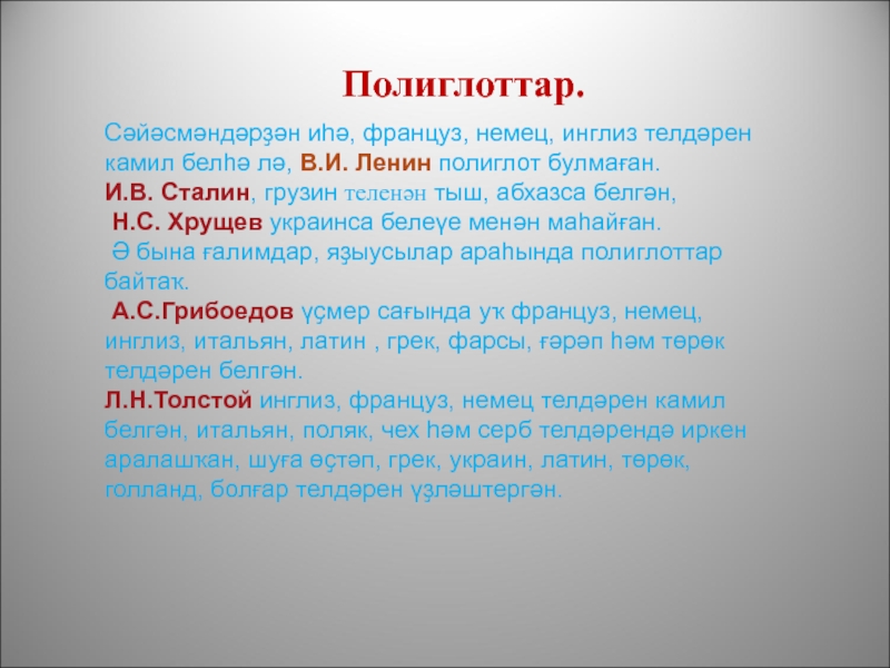Ә бына ғалимдар, яҙыусылар араһында полиглоттар байтаҡ.