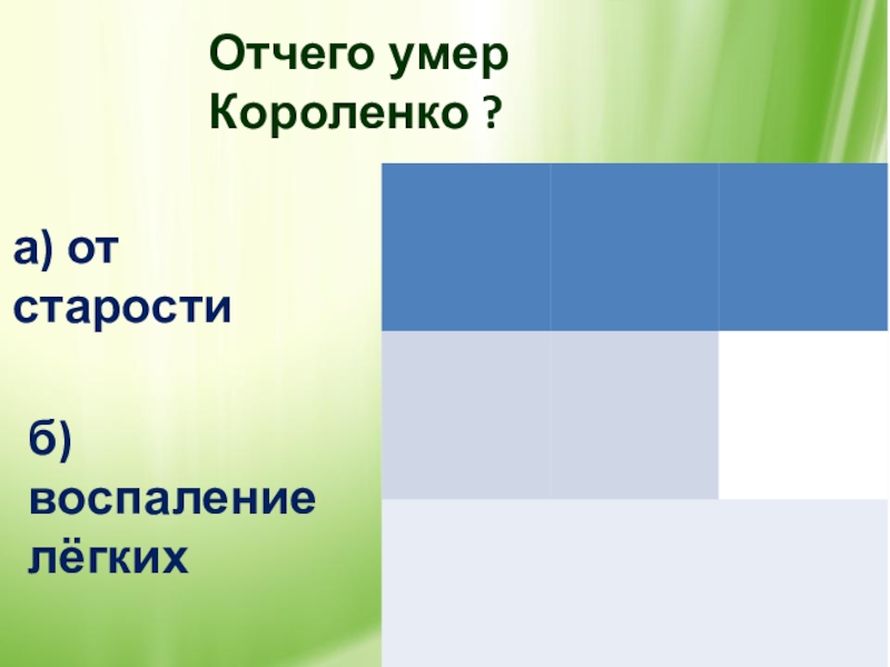 Отчего умер Короленко ?а) от старостиб) воспаление лёгких