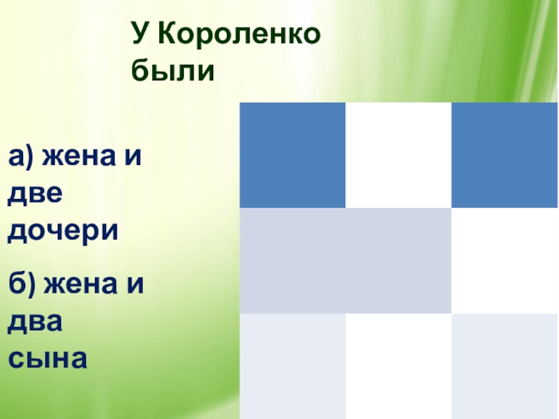 У Короленко были а) жена и две дочериб) жена и два сына