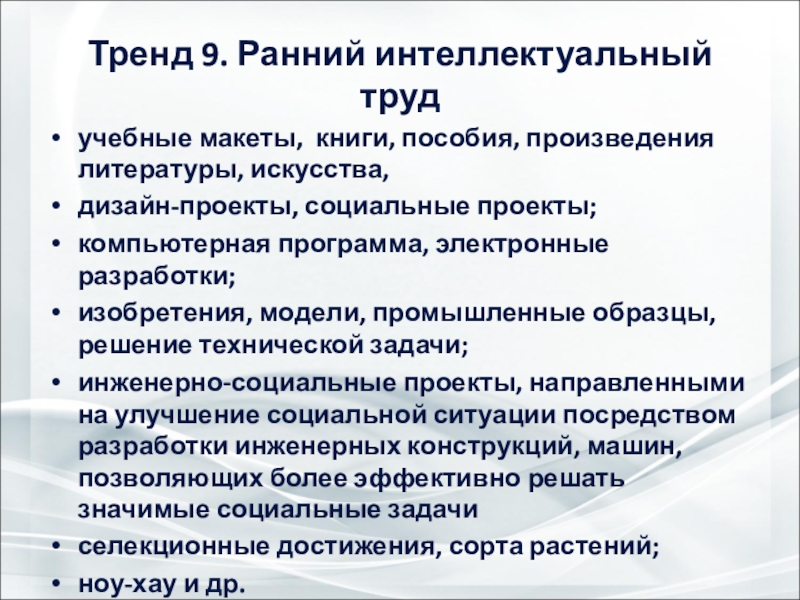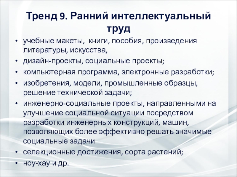 Слайд 29Тренд 9. Ранний интеллектуальный труд