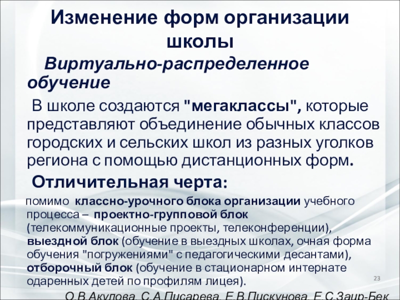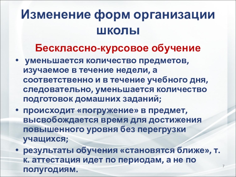 Слайд 7Изменение форм организации школы