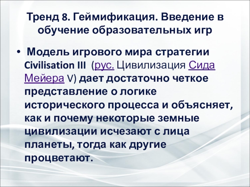 Слайд 25Тренд 8. Геймификация. Введение в обучение образовательных игр