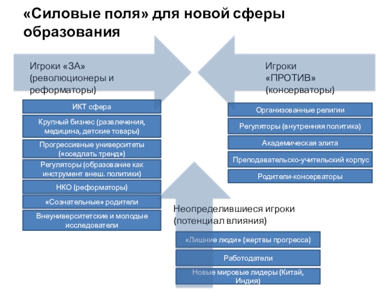 Слайд 32«Силовые поля» для новой сферы образования