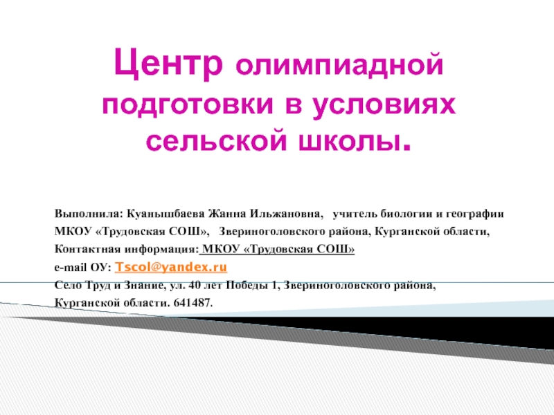 МКОУ «Трудовская СОШ», Звериноголовского района, Курганской области,