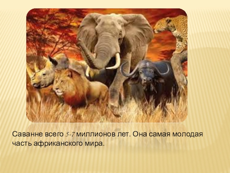 Слайд 9Саванне всего 5-7 миллионов лет. Она самая молодая часть африканского мира.