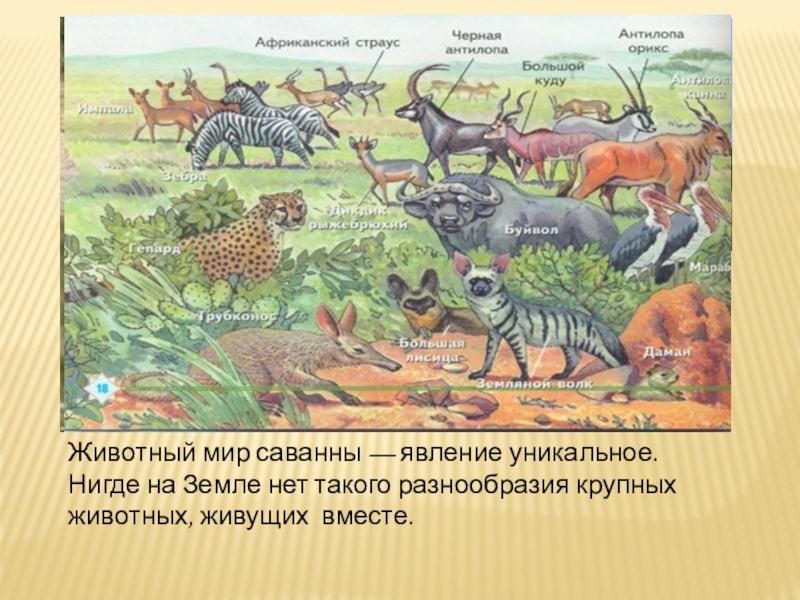 Слайд 3Животный мир саванны — явление уникальное. Нигде на Земле нет такого