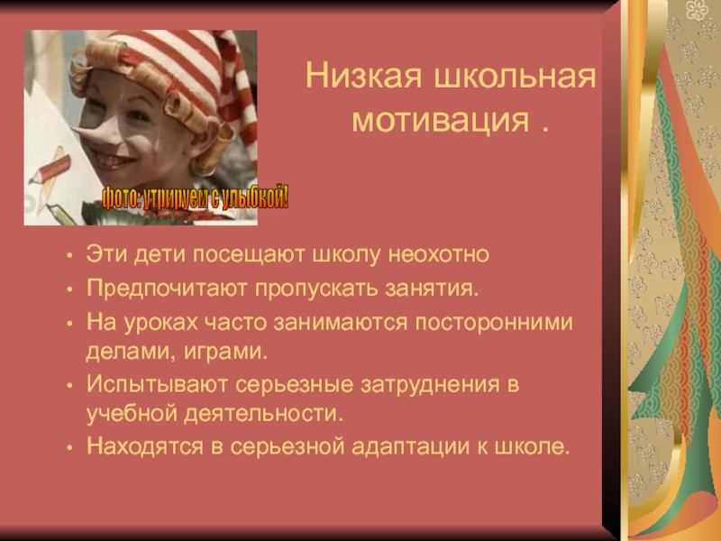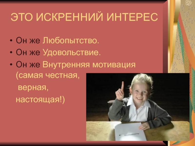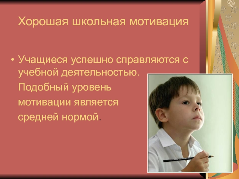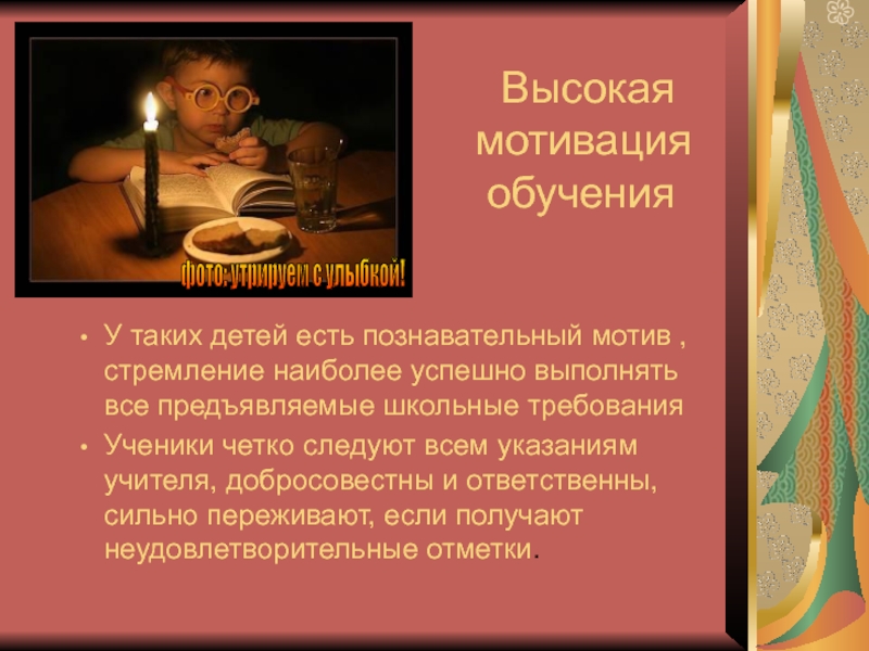 У таких детей есть познавательный мотив , стремление наиболее успешно выполнять все предъявляемые школьные требования