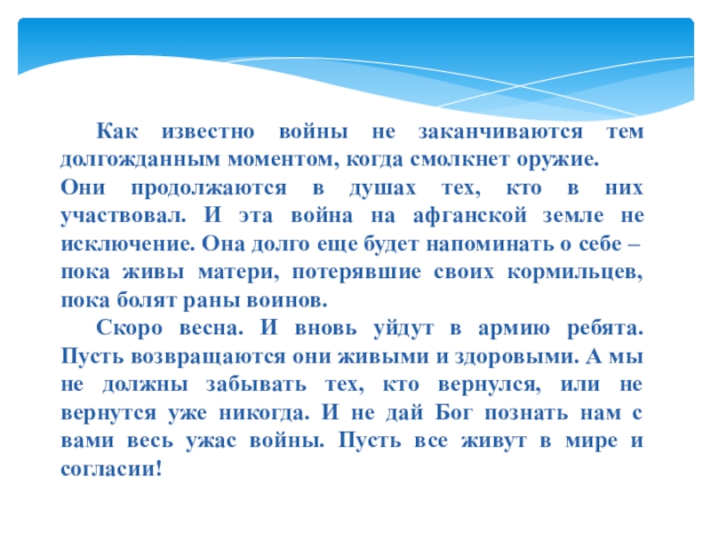 Вспоминать о службе тяжело и трудно! Сжимается сердце и становится больно! Многих женщин война оставила без сыновей. Многих сестер оставила без братьев, много домов она разрушила. Водоворот времени подхватил солдат и бросил их по течению, не подготовленных к смерти, и не знавших жизни.