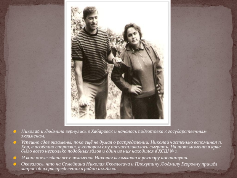 Слайд 7Николай и Людмила вернулись в Хабаровск и началась подготовка к государственным