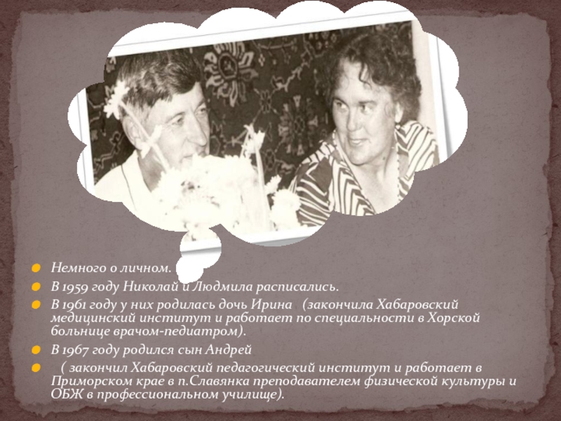 Слайд 3В педагогическом институте Николай познакомился со своей будущей женой Плохутиной Людмилой,