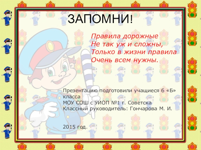 Каждый знает в 6 «Б», что детям знать положено правила дорожные. Всегда старайся, следуй им и будешь цел и невредим.
