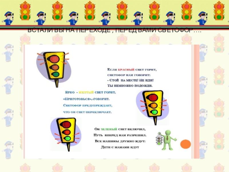 Слайд 10ВСТАЛИ ВЫ НА ПЕРЕХОДЕ , ПЕРЕД ВАМИ СВЕТОФОР….