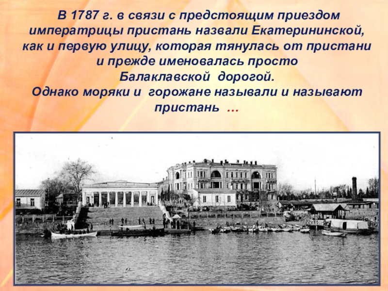 Слайд 33 В 1787 г. в связи с предстоящим приездом императрицы пристань назвали