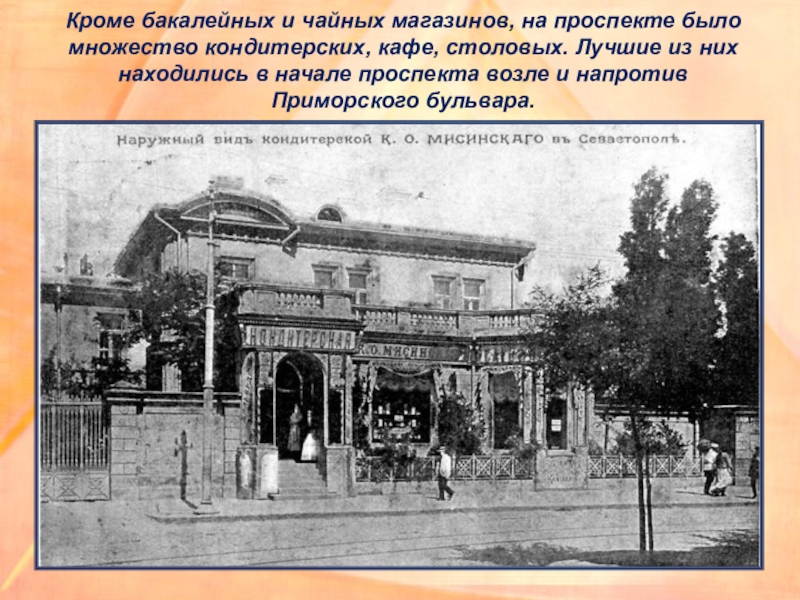 Кроме бакалейных и чайных магазинов, на проспекте было множество кондитерских, кафе,