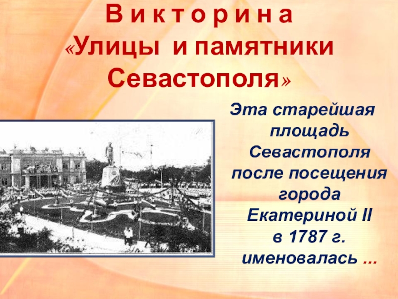 Эта старейшая площадь Севастополя после посещения города Екатериной II в 1787 г. именовалась ...