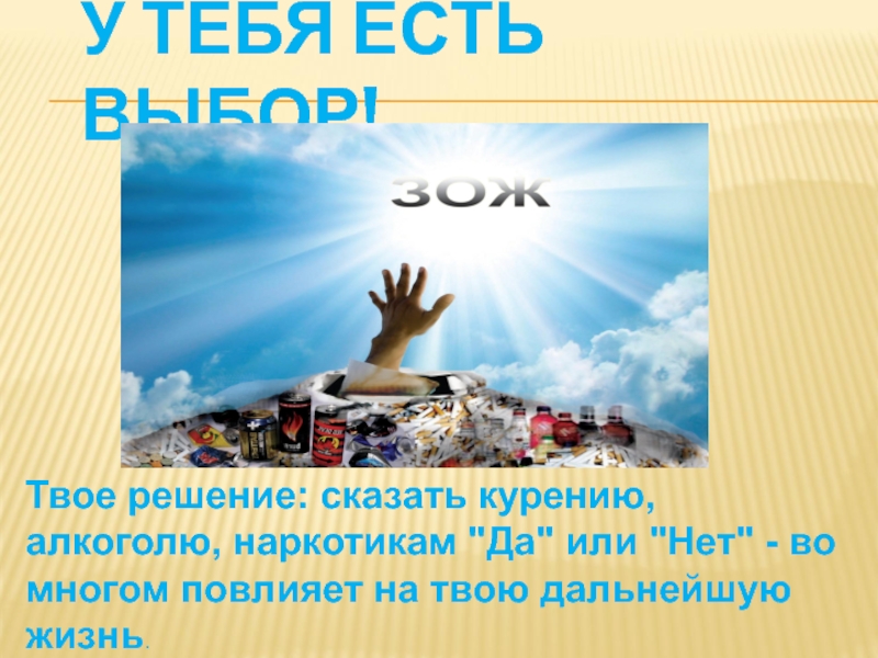 У ТЕБЯ ЕСТЬ ВЫБОР! Твое решение: сказать курению, алкоголю, наркотикам
