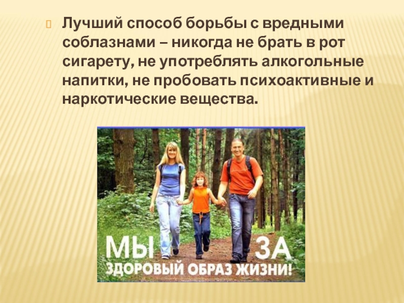 Слайд 6Лучший способ борьбы с вредными соблазнами – никогда не брать в