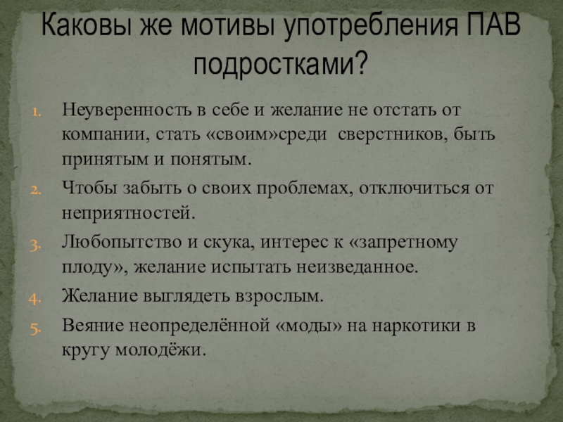Каковы же мотивы употребления ПАВ подростками?