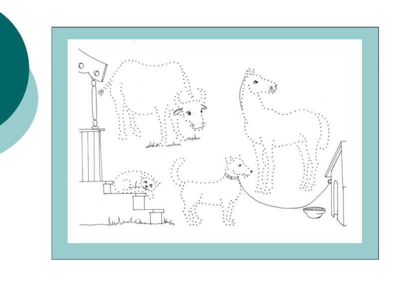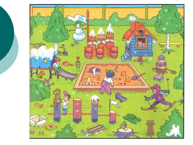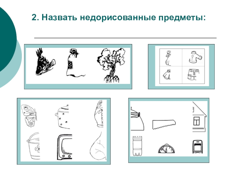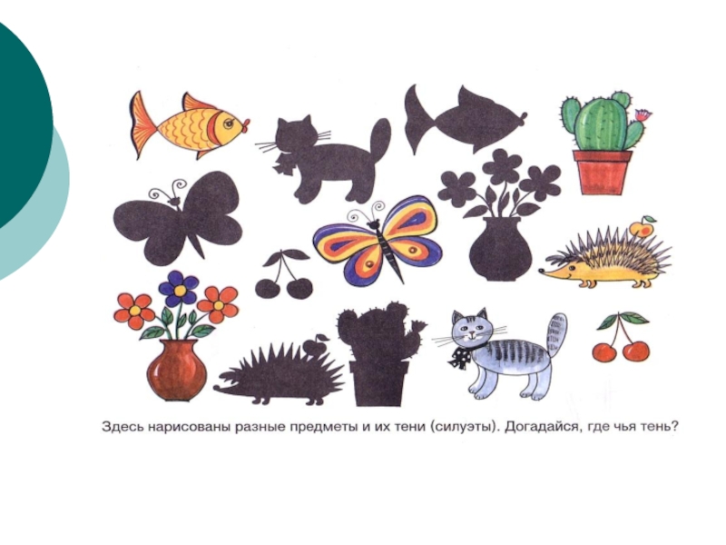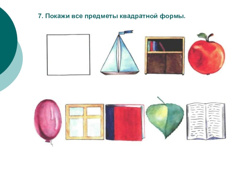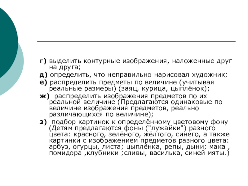 Детям предлагаются карточки, на которых нарисованы круг, прямоугольник, крестик, кружок, точка. Примерные задания: