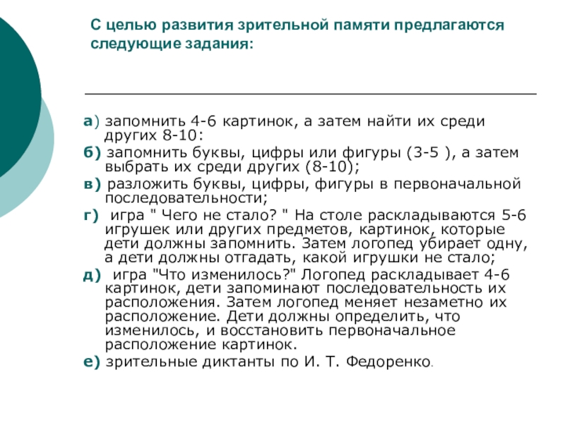 2. Уточнение и расширение объема зрительной памяти.