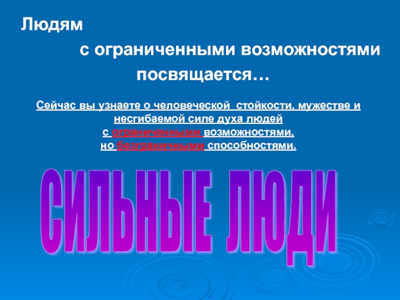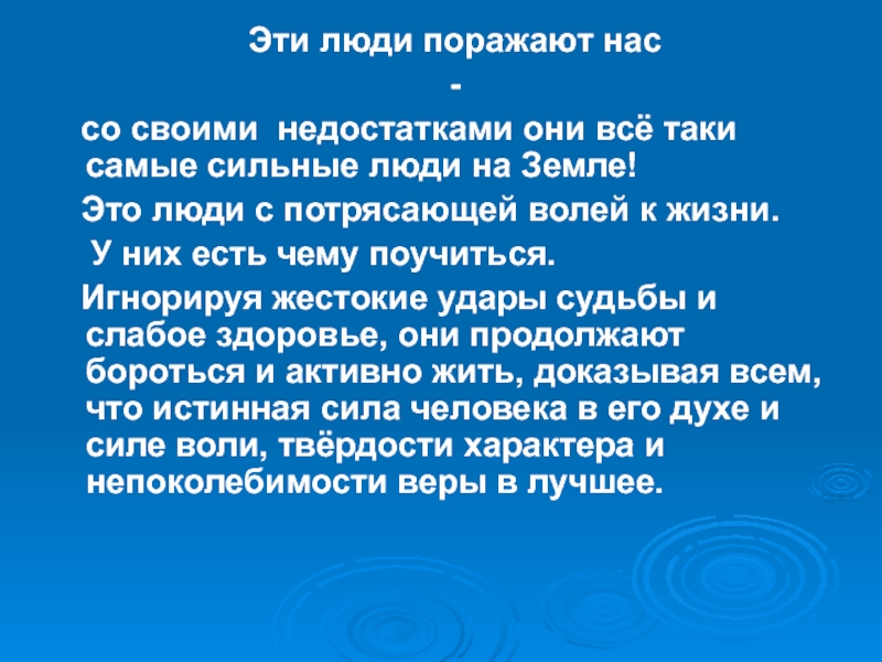 Слайд 2 Обычно мы считаем сильными людьми тех, кто обладает необыкновенной