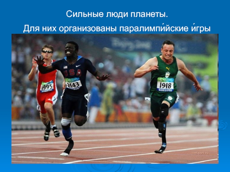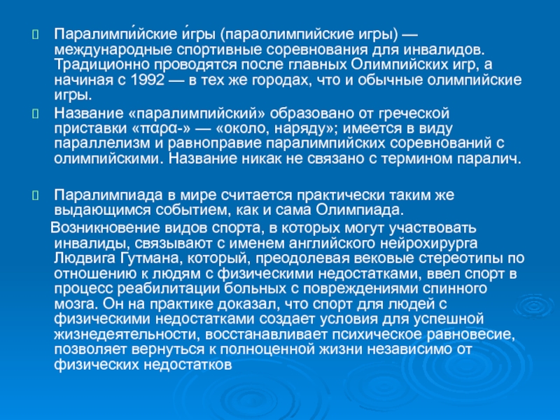 Слайд 50Паралимпи́йские и́гры (параолимпийские игры) — международные спортивные соревнования для инвалидов. Традиционно