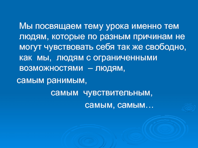 которые по разным причинам не могут чувствовать себя так же свободно, как мы, людям с ограниченными возможностями – людям,