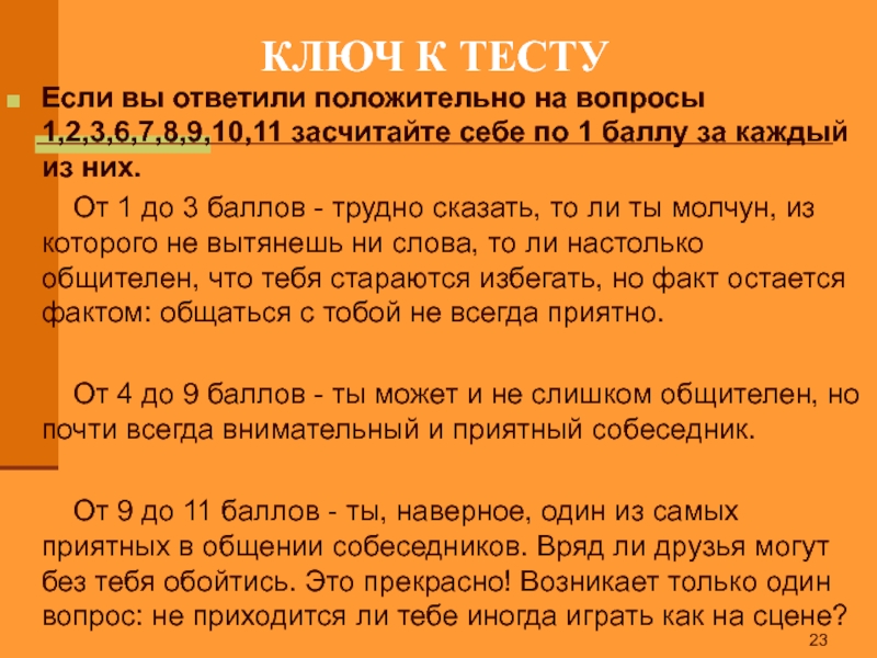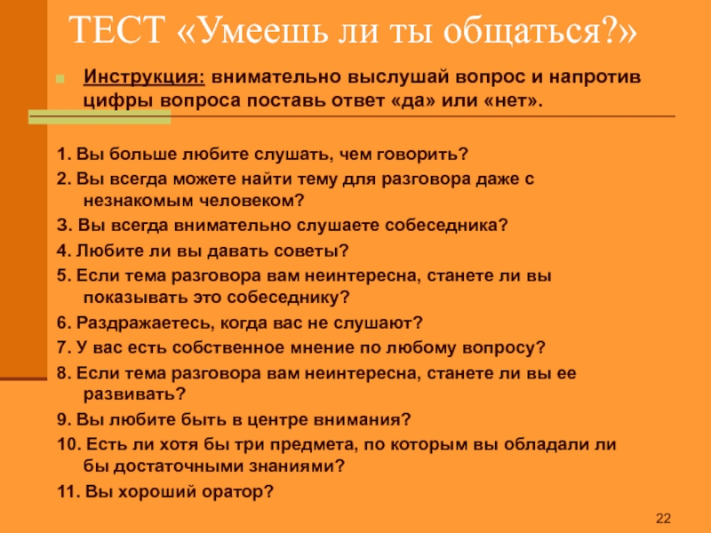Слайд 22ТЕСТ «Умеешь ли ты общаться?»