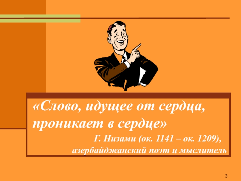 Слайд 3«Слово, идущее от сердца, проникает в сердце»
