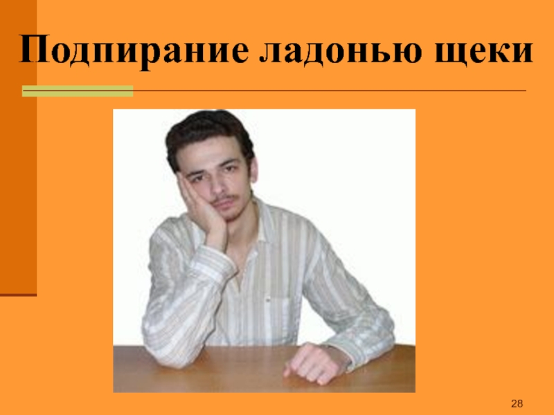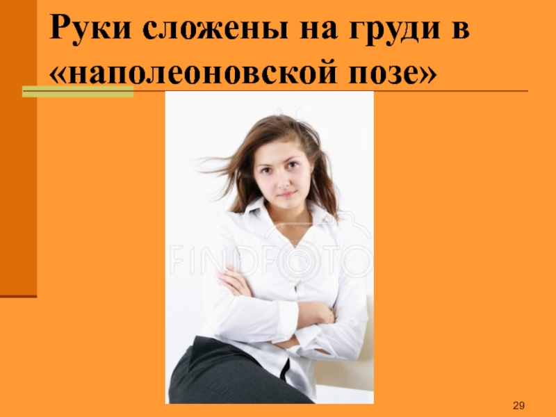 Слайд 29Руки сложены на груди в «наполеоновской позе»