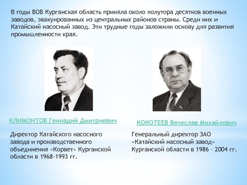 Генеральный директор ЗАО «Катайский насосный завод» Курганской области в 1986 – 2004 гг.