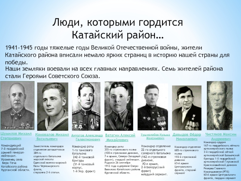 Наши земляки воевали на всех главных направлениях. Семь жителей района стали Героями Советского Союза.