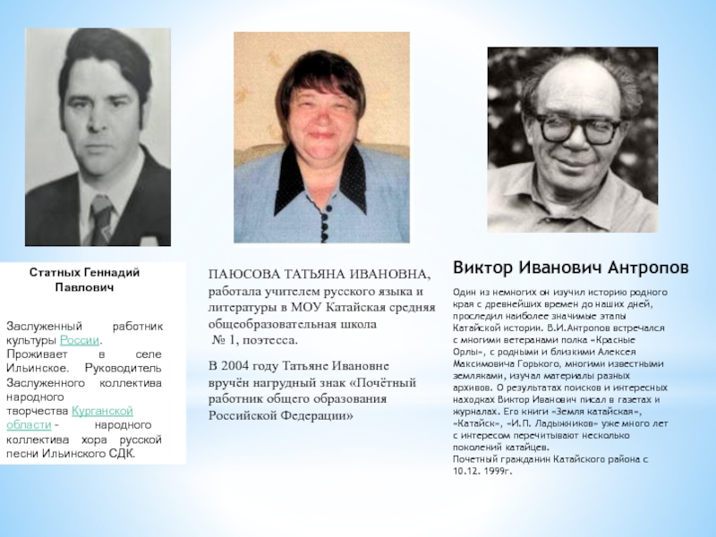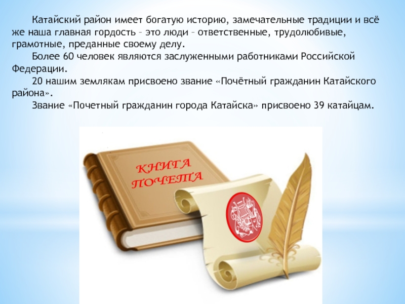 Почетный гражданин Катайского района с 10.12. 1999г.