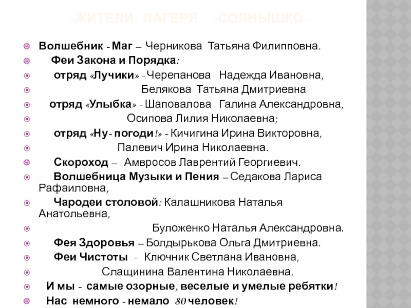 отряд «Улыбка» - Шаповалова Галина Александровна,