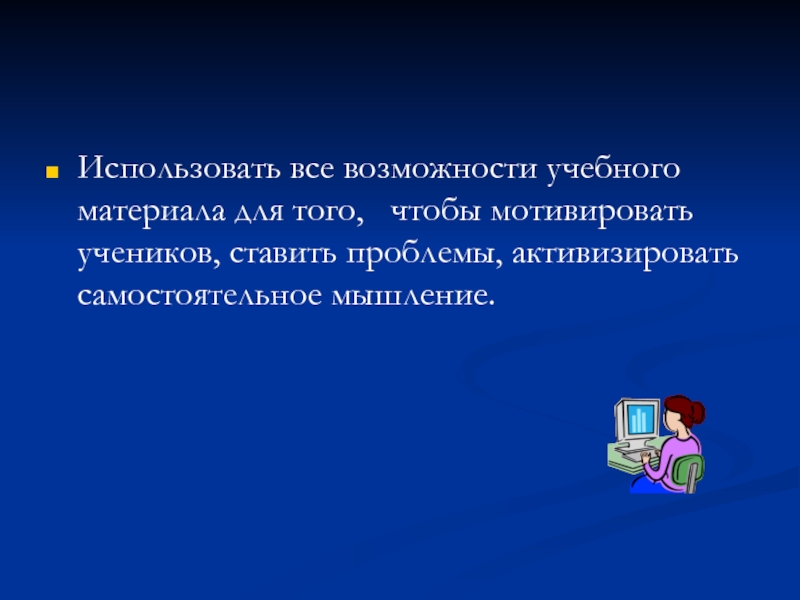 Слайд 21Использовать все возможности учебного материала для того, чтобы мотивировать учеников,