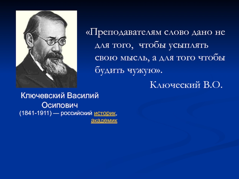 Слайд 4«Преподавателям слово дано не для того, чтобы усыплять свою мысль, а