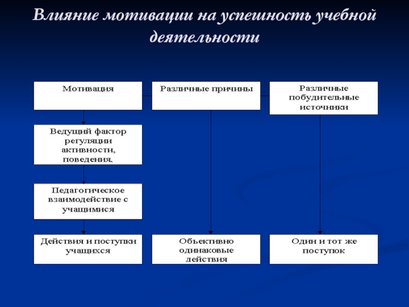 Слайд 12Влияние мотивации на успешность учебной деятельности