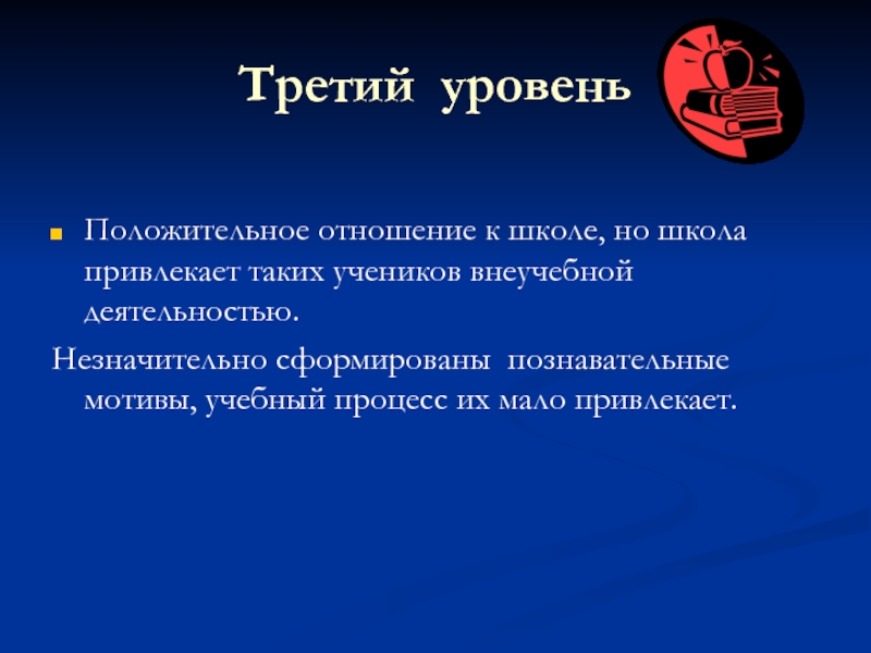 Положительное отношение к школе, но школа привлекает таких учеников внеучебной
