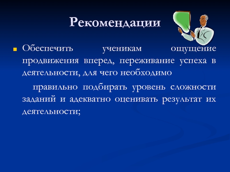 Обеспечить ученикам ощущение продвижения вперед, переживание успеха в деятельности, для чего