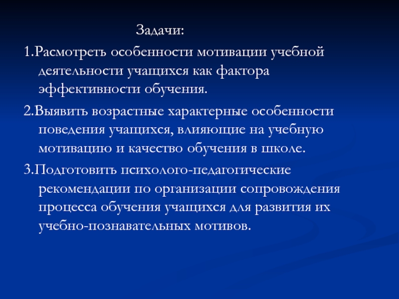 3.Подготовить психолого-педагогические рекомендации по организации сопровождения процесса обучения учащихся для развития их учебно-познавательных мотивов.
