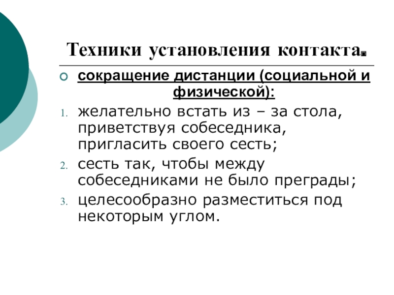 метод снятия напряженности позволяет тесно установить контакт с собеседником