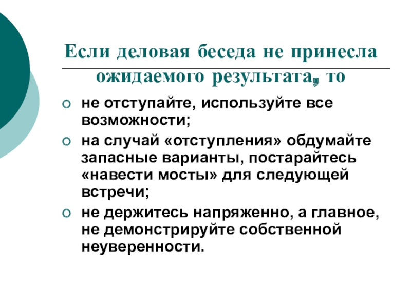 Слайд 18Если деловая беседа не принесла ожидаемого результата, то