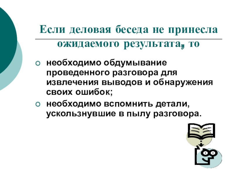 Слайд 19Если деловая беседа не принесла ожидаемого результата, то