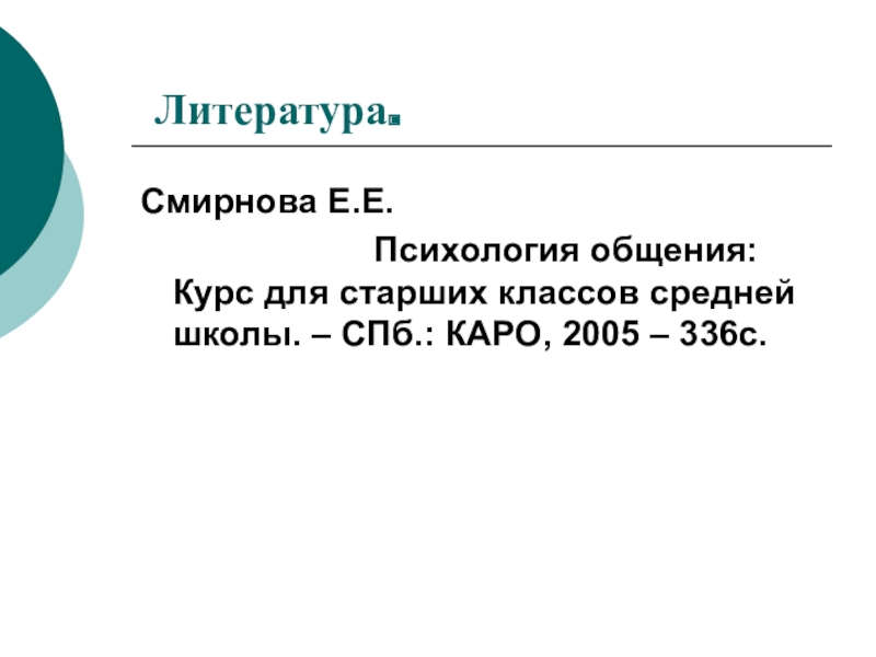 Психология общения: Курс для старших классов средней школы. – СПб.: КАРО, 2005 – 336с.